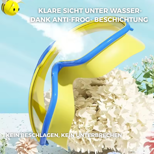 Kein Beschlagen mehr, kein Wassereintritt, kein Drücken- dank hochwertigem Silikon und cleverem Design. Mit integrierten Ohrstöpseln ist endlich Schluss mit verlorenen Teilen. Eine praktische Komplettlösung, die Schwimmen für Kinder und Erwachsene endlich sorgenfrei machen.
